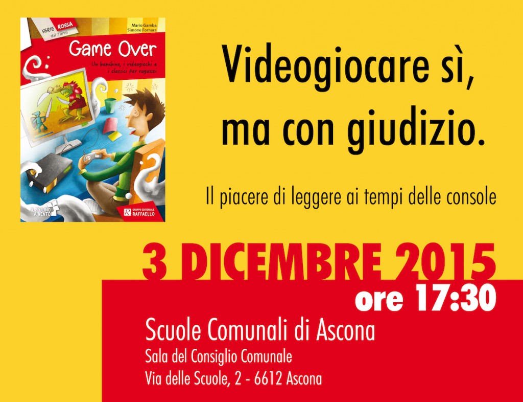 game_over_ascona_PP1ridLa Direzione delle Scuole Comunali di Ascona è lieta di invitarvi alla presentazione del nuovo libro di Simone Fornara e Mario Gamba, Game Over (Raffaello Editrice, 2015),